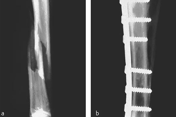 那在檢測(cè)的時(shí)候還需要看到植入物的情況,但由CFPEEK復(fù)合材料制成的零件通常具有放射透性,幾乎無法通過X射線檢測(cè)。就通過添加諸如鉭絲之類的X射線散射材料,可以使植入物變得可見??梢钥聪聢D展示了一個(gè)固定骨折骨頭的骨愈合板??梢钥闯?,通過設(shè)計(jì)已對(duì)放射密度進(jìn)行了定制,以便在盡量減少對(duì)骨折部位遮擋的同時(shí)可視化組件。重要的是,實(shí)現(xiàn)X射線可見性的同時(shí)也能保持清晰的MRI圖像。