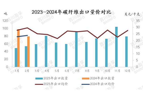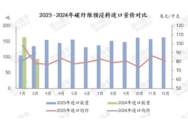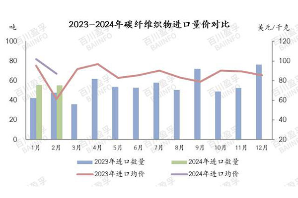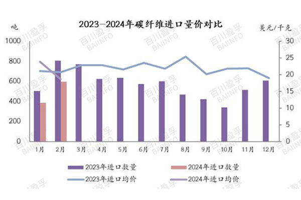 7. 從供需角度看,國內(nèi)碳纖維市場在2024年1-2月市場價(jià)格區(qū)間窄幅波動(dòng),下游需求相對(duì)平淡,進(jìn)口量尤其是碳纖維原料進(jìn)口量同比減少,顯示出國內(nèi)市場對(duì)碳纖維產(chǎn)品的需求結(jié)構(gòu)特征和國際市場競爭態(tài)勢。