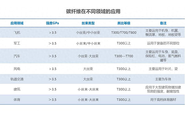 碳纖維被認(rèn)為是高性能纖維的杰出代表,以高比強(qiáng)度和高比模量而被認(rèn)可,同時還具有密度低、耐高溫、耐腐蝕、抗疲勞等一系列的優(yōu)勢,因此發(fā)展迅猛成為替代金屬材料的首選材料?,F(xiàn)如今的碳纖維已經(jīng)廣泛的應(yīng)用到航空航天、軌道交通、國防軍事、醫(yī)療器械以及海洋工程、風(fēng)力發(fā)電、體育休閑等多領(lǐng)域中,是國民經(jīng)濟(jì)和現(xiàn)代化國防的重點物資材料。